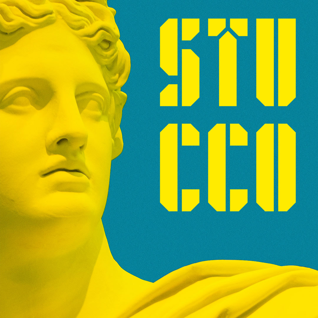 Stucco is a construction material made of aggregates, a binder, and water. Stucco is applied wet and hardens to a very dense solid. It is used as a decorative coating for walls and ceilings, exterior walls, and as a sculptural and artistic material in architecture. Similar to the material, Stucco font is meant to be used a decorative solution to various print and digital materials.